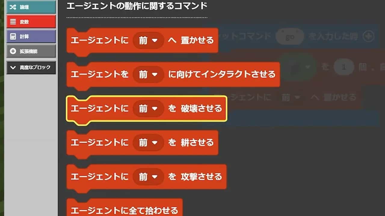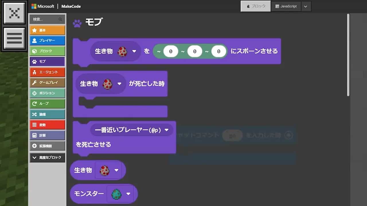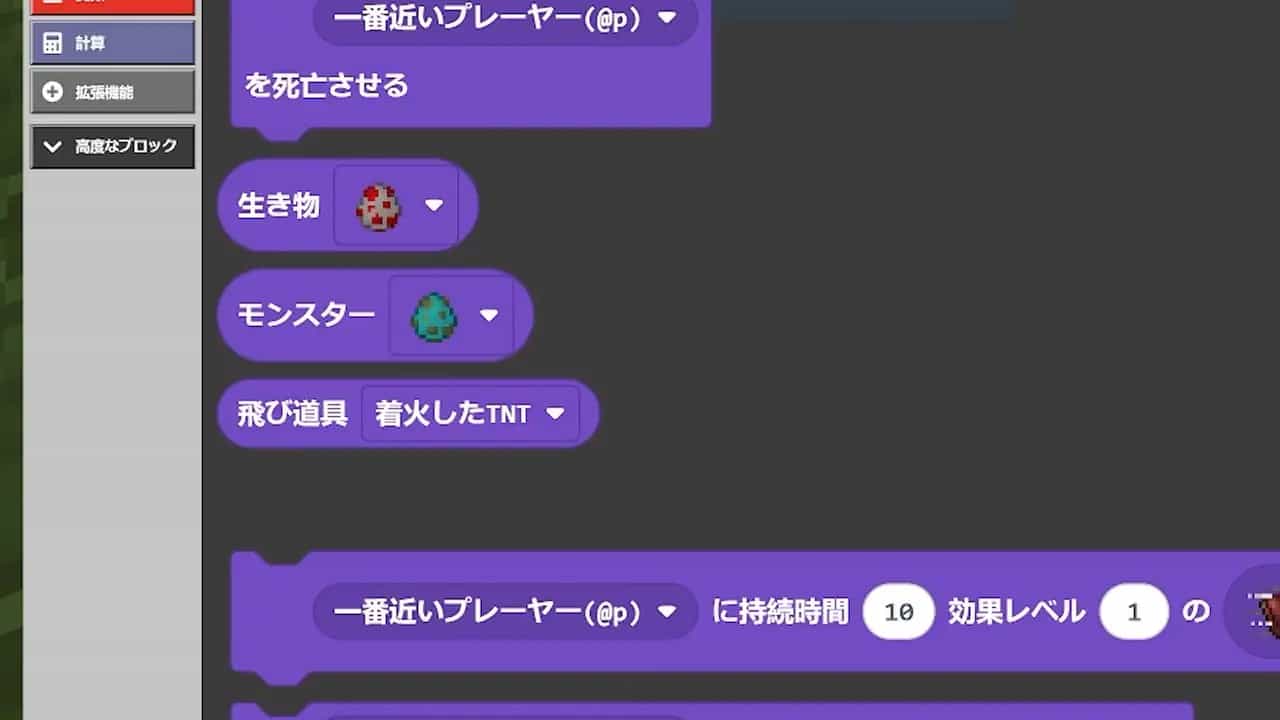 ブロックを組み合わせてプログラムを作り、マインクラフトの世界でキャラクターを動かしたり、モンスターを出現させたりすることができます。遊びの延長のような感覚で学べるので、楽しく続けられます!